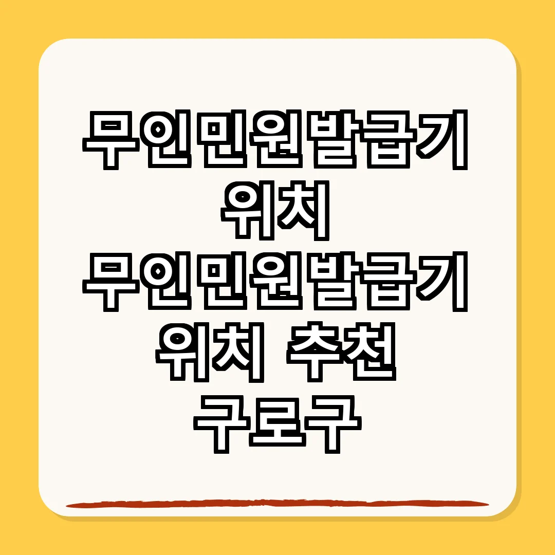 구로구의 무인민원발급기는 주민등록등본 등 다양한 서류를 발급받는 데 큰 도움이 됩니다. 특히, 운영 시간이 유동적이므로 이용 전에 확인하는 것이 중요합니다.