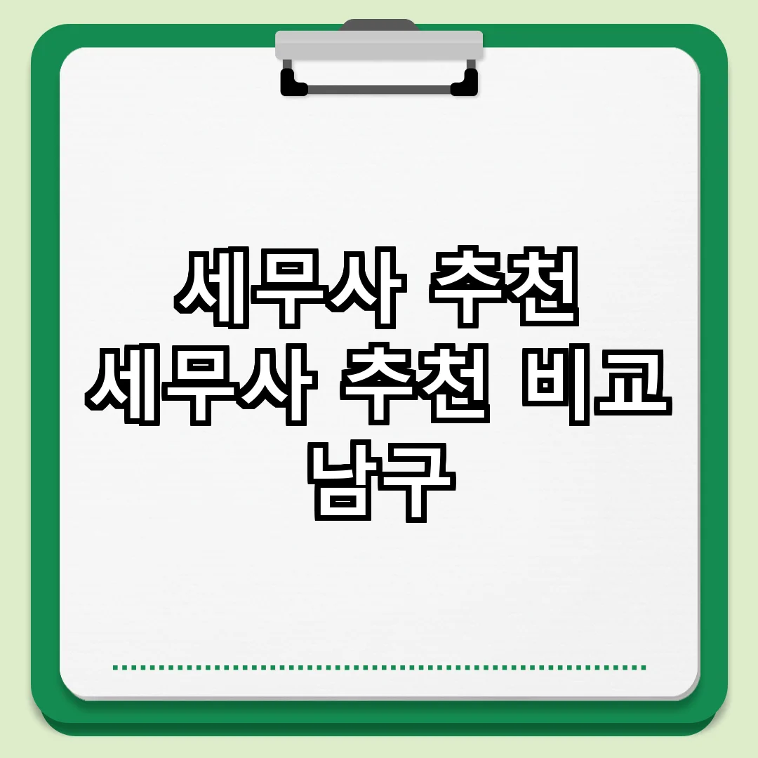 남구 지역의 세무사 추천은 개인과 기업의 세무 문제를 효과적으로 해결하는 데 큰 도움이 됩니다. 세무사 선택 시 여러 요소를 고려하여 신중하게 결정하는 것이 중요합니다.