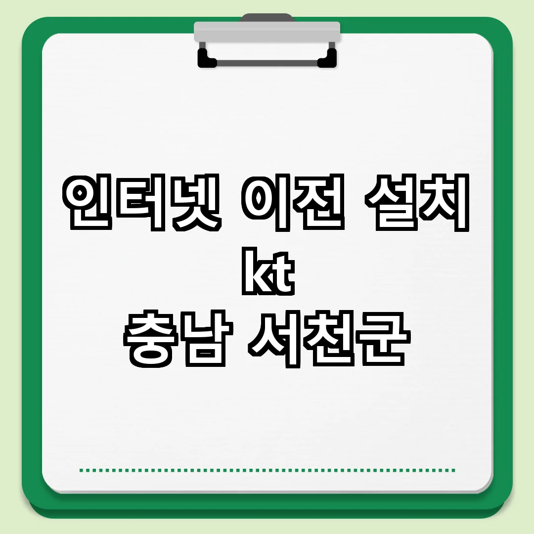 충남 서천군에서의 인터넷 이전 설치는 원활한 생활을 위해 필수적인 요소입니다. 필요한 정보와 과정을 미리 숙지하여, 새로운 집에서도 편리한 인터넷 환경을 유지하시기 바랍니다.